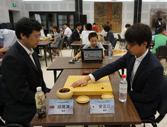 ▲안정기가 중국의 후위칭에 맞서 첫 수를 착점하는 장면