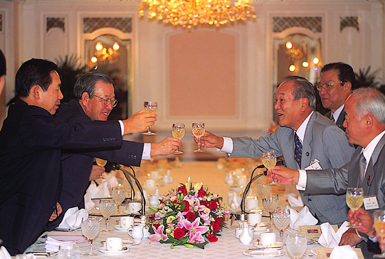 2002년 한일 국회의원 친선우호 바둑대회 개막에 앞서 김종필 한일의원연맹▲