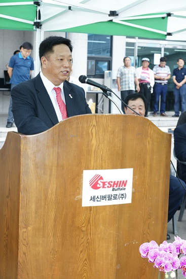 ▲세신버팔로 문병철 대표이사(경상남도바둑협회장)의 환영사 장면