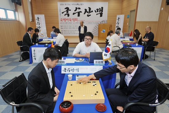 박정환(1위), 이세돌(2위), 최철한(6위) 9단으로 구성된 한국팀은 10일 전남 신안군 신안군청 내 특설대국실에서 열린 ‘2015 국수산맥 한중단체바둑대항전 3라운드’에서 중국의 퉈자시, 미위팅, 판팅위 9단에게 종합전적 5대 4로 신승을 거뒀다.