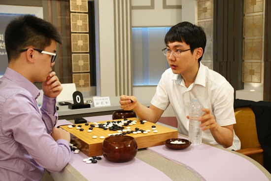 ▲중국 랴오싱원 5단(왼쪽) vs 박정환 9단의 복기장면