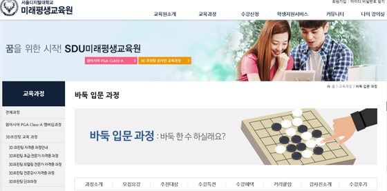 <바둑 입문 과정 : 바둑 한수 하실래요?>의 수강 신청과 학습은 서울디지털대학교 미래평생교육원 홈페이지(http://edu.mirae.sdu.ac.kr/)를 통해 가능하다. 문의 1644-8409