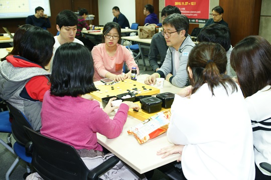 오늘도 변함없이 국가대표팀이 검토에 열을 올리며 박정환 9단을 응원했다.