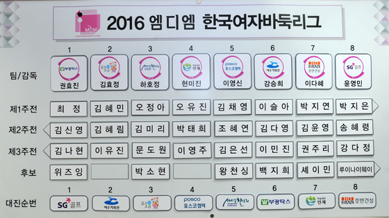 ‘2016 엠디엠 한국여자바둑리그’ 선수 선발 현황