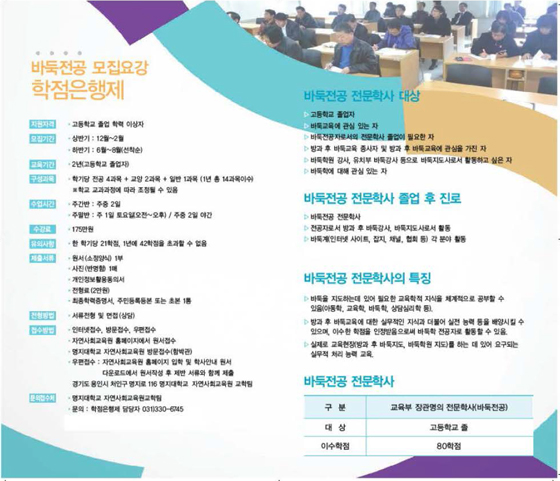 명지대학교 자연사회교육원이 2016학년도 학점은행제 체육전문학사 과정에서 바둑전공자를 모집한다.