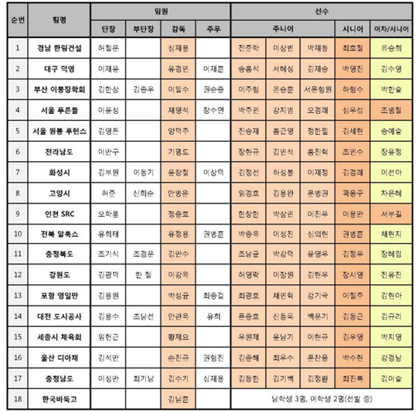 2016 내셔널바둑리그 선수단 명단