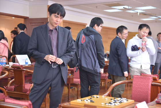 ▲이세돌 9단이 점심 휴식시간 후 다른 대국자의 바둑을 둘러보고 있다