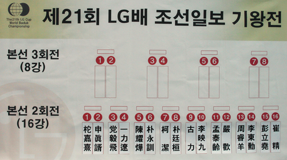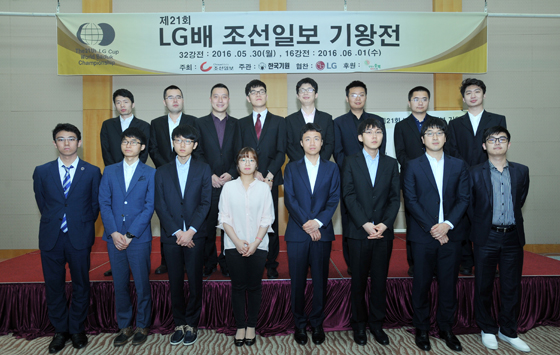 ▲본선 16강 진출자들이 한 자리에 모였다. 16강은 중국 9명,한국 6명, 일본 1명이다