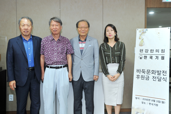 5일 서울 성동구 마장로에 위치한 한국기원 총재실에서 열린 바둑문화발전 후원금 전달식에는 한국기원에서 박치문 부총재와 서봉수 9단ㆍ하호정 홍보이사, 편강한의원에서 서효석 원장과 이은서ㆍ김근섭 대리가 참석했고, 사이버오로에서 손종수 상무가 함께 했다.