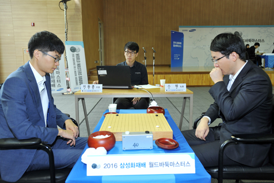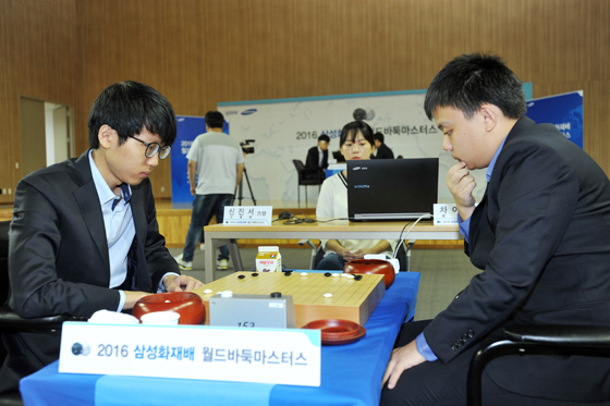7일 경기도 고양시에 위치한 삼성화재 글로벌캠퍼스에서 열린 2016 삼성화재배 월드바둑마스터스 32강전 둘째 날 경기에서 한국 4명, 중국 4명 등 8명이 16강 진출을 확정지었다.