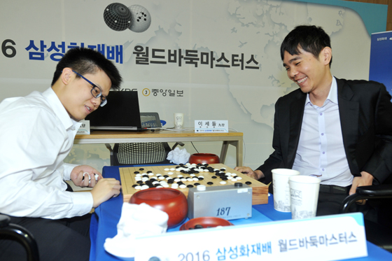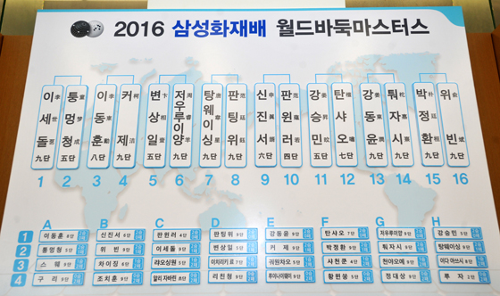 8일 경기도 고양시 삼성화재 글로벌캠퍼스에서 열린 2016 삼성화재배 월드바둑마스터스 본선 32강 최종일 경기에서 한국은 박정환ㆍ이세돌 9단과 변상일 5단이 모두 승리하며 16강행 막차에 올랐다.