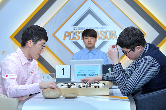 11일 서울 성동구 마장로에 위치한 한국기원 바둑TV스튜디오에서 막을 내린 2016 KB국민은행 바둑리그(이하 KB리그) 챔피언결정전 3번기 3차전 제5국에서 티브로드의 강유택 7단이 포스코켐텍 윤찬희 6단에게 136수 만에 백 불계승을 거두며 종합전적 2-1로 우승을 확정지었다.