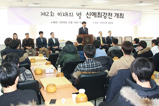 제2기 미래의 별 신예최강전의 시작을 알리는 개막식이 19일 서울 성동구 마장로에 위치한 한국기원 2층 대회장에서 열렸다.