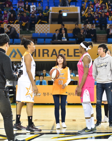 KB국민은행의 여자농구팀 청주 KB스타즈가 18일 정규리그 5라운드 KDB생명과의 홈경기에서 ‘바둑데이’ 행사를 가졌다.