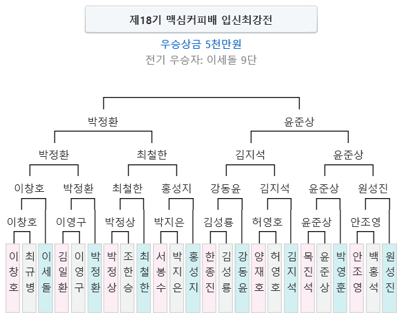 동서식품이 후원하고 한국기원이 주최하는 맥심커피배 입신최강전은 각자 10분에 40초 초읽기 3회가 주어지며 총규모는 1억 8,500만원이다. 우승상금은 5,000만원, 준우승 상금은 2,000만원이다.