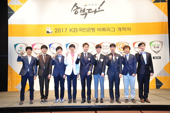 2017 KB리그에는 ‘디펜딩 챔피언’ 티브로드(티브로드팀/감독 이상훈 9단)와 준우승팀 포스코켐텍(포스코켐텍팀/감독 김성룡 9단)을 비롯해 GS칼텍스(Kixx팀/감독 김영환 9단), 신안군(신안천일염팀/감독 이상훈 9단), SK에너지(SK엔크린팀/감독 최규병 9단), KGC인삼공사(정관장 황진단팀/감독 김영삼 9단), 화성시(화성시코리요팀/감독 박지훈 6단), 한국물가정보(한국물가정보팀/감독 한종진 9단), BGF리테일(BGF리테일CU팀/감독 백대현 9단) 등 모두 9개팀이 출전했다.