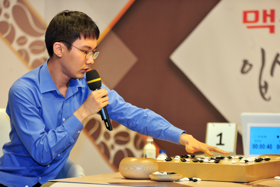 ▲국후 반상에서 시청자들에게 승부처를 해설 중인 박정환 9단