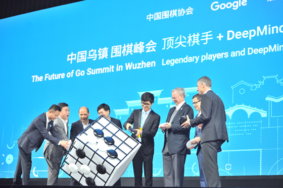 ▲ 커제(가운데)와 관계자들이 바둑판 모형에 바둑알을 놓는 퍼포먼스를 하고 있다알파고 vs 커제 대결 세부 일정 ※중국 현지시간 기준