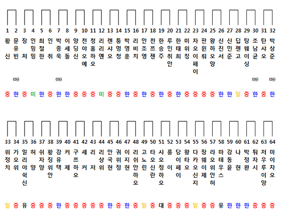 ▲제3회 몽백합배 세계바둑오픈전 64강 대진표