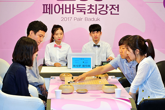 ▲제7회 SG배 페어바둑최강전 결승대국. 이영구·김미리 페어(왼쪽)가 우승을 차지했다