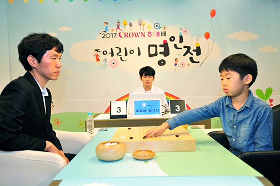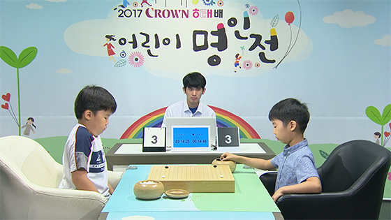 한국기원 바둑TV가 주최·주관하고 크라운해태가 후원한 2017 크라운해태배 어린이 명인전의 영재부 본선 32강은 모든 대국을 바둑TV 스튜디오에서 방송대국으로 치러졌다.