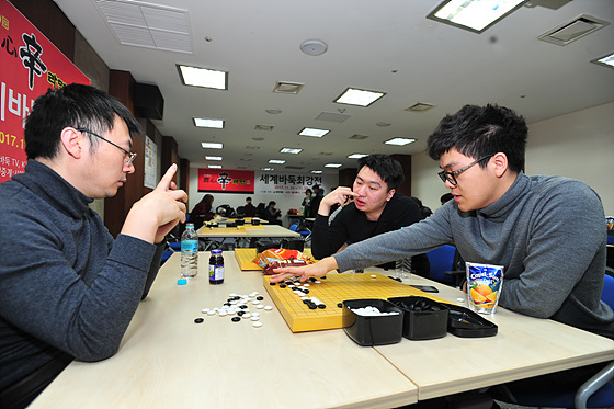 한편 검토실에서는 김인 단장, 목진석 국가대표 감독과 허영호 코치, 신진서 8단, 김명훈 6단 등 한국 선수단이 일본 단장 조치훈 9단, 야마시타 게이고 9단 등 일본 선수단과 함께 공동 연구를 진행해 눈길을 끌고 있다.