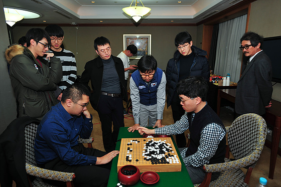 신민준 6단이 우세를 확립한 가운데 다소 침체된 분위기에서 검토를 이어가던 중국 선수단은 상중앙 백 대마가 완생하는 순간 바둑판에 돌을 쓸어담았다.