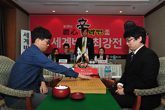 25일 오후 2시 부산 농심호텔 9층에 마련된 특별대국장에서 제19회 농심신라면배 세계바둑최강전 6국이 신민준 6단과 야마시타 게이고 9단의 대결로 시작됐다. 신민준 6단은 한국의 선봉장으로 5연승을 기록중이며 야마시타 게이고 9단은 일본의 세 번째 주자.