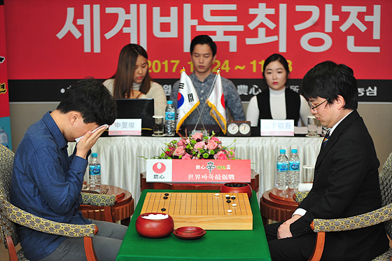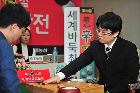 ▲ 일본의 세 번째 주자 야마시타 게이고 9단의 착수 장면. 야마시타 게이고 9단은 일본 서열 1위 기전인 기성전에서 4년 연속 우승을 차지했던 일본의 대표기사다.