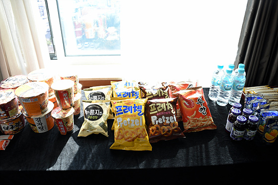 ▲ 농심신라면배 2차전 모든 경기는 농심호텔 9층 특별대국장에서 진행된다. 좌측에는 선수들을 위한 간식이 마련되어 있다.