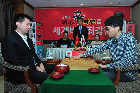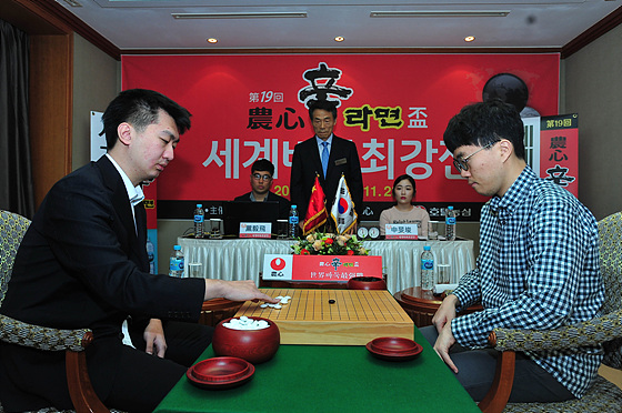 26일 오후 2시 부산 농심호텔 9층 특별대국실에서 제19회 농심신라면배 세계바둑최강전 본선 7국이 신민준 6단과 당이페이 9단의 한중전으로 시작됐다. 두 기사의 공식 대결은 이번이 처음이다.