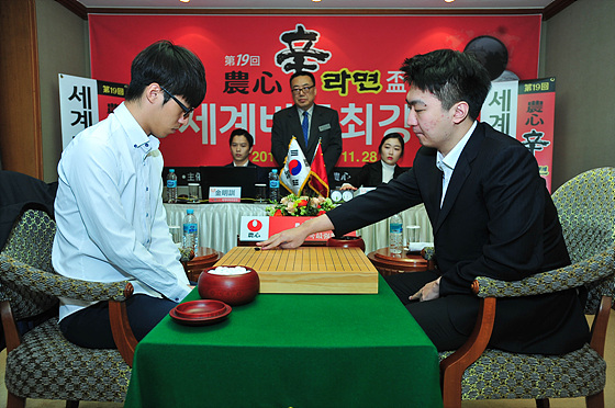 28일 오후 2시 부산 농심호텔 9층 특별대국실에서 제19회 농심신라면배 세계바둑최강전 본선 9국이 김명훈 5단과 당이페이 9단의 대결로 시작됐다. 김명훈 5단과 당이페이 9단은 이번이 첫 만남이다.