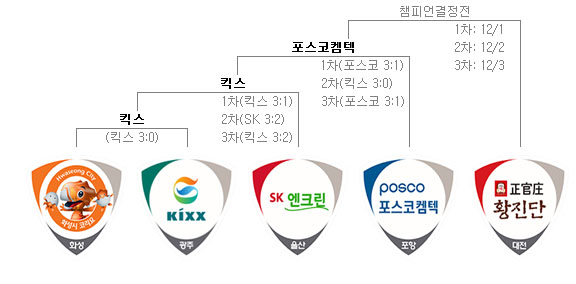 포스코켐텍이 Kixx를 물리치고 KB리그 챔피언결정전에 올랐다.