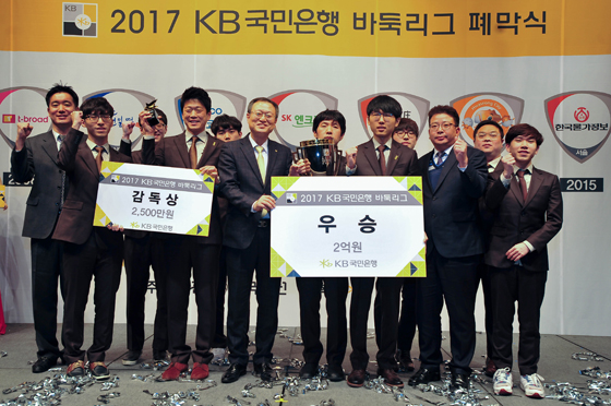 정관장 황진단 김영삼 감독은 “팀을 맡은 지 6년 만에 우승했고 한국을 대표해 한ㆍ중 바둑리그 우승팀 대항전까지 나가게 돼 영광”이라면서 “바둑팬들과 소속팀의 성원에 보답하기 위해서라도 꼭 이기고 돌아오겠다”는 출사표를 올렸다.