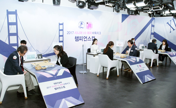 12일 서울 마장로 한국기원 바둑TV스튜디오에서 열린 대방건설배 2017 시니어 vs 여자 바둑리그 챔피언스컵 3번기 2차전에서 포항 포스코켐텍(감독 이영신)이 부산 KH에너지(감독 김성래)에 3-0으로 승리하며 챔피언스컵 정상에 올랐다.