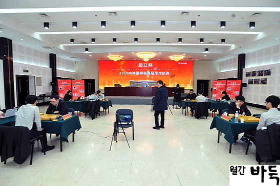 ▲ 2018 진리배 한중 바둑리그 우승팀 대항전이 벌어지고 있는 중국기원 2층 대회장 전경.