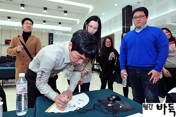 현장 이모저모/탕웨이싱도 사인 받는 이창호 九단