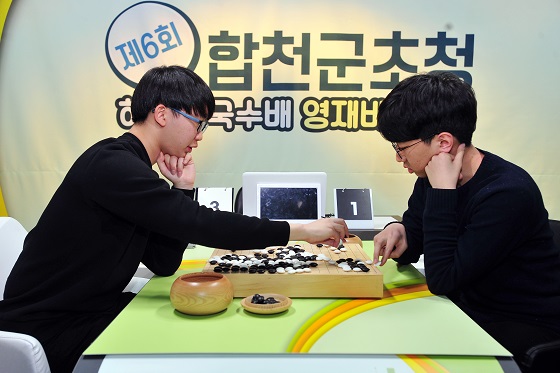 ▲동갑내기 결승 대결에서 박현수 2단(왼쪽)이 박진영 2단을 꺾고 우승컵을 차지했다