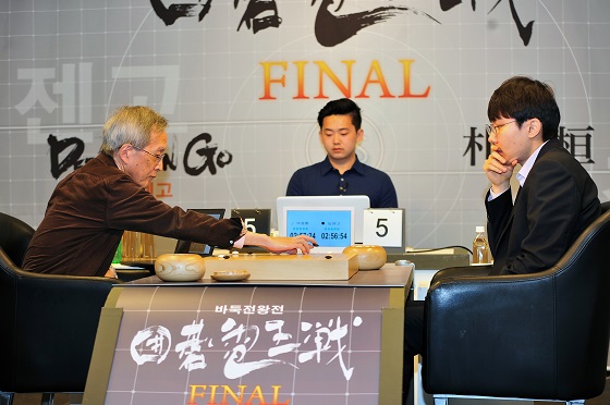 1일 서울 마장로 한국기원 바둑TV스튜디오에서 벌어진 ‘바둑전왕전 파이널’ 2국에서 박정환 9단이 일본 인공지능 바둑프로그램 딥젠고에게 169수 만에 백 불계패했다.
