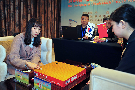 10일 오전 9시(한국시각 오전 10시) 중국 장쑤성 장옌 호텔 11층 특별대국실에서 제8회 황룡사·정단과기배 세계여자바둑단체전 3국이 한국 두 번째 주자 김미리 3단과 중국 선봉 리허 5단의 대겨로 시작됐다. 리허 5단은 어제(9일) 2국에서 일본 선봉 뉴에이코 초단을 제압하고 승점을 기록했다.