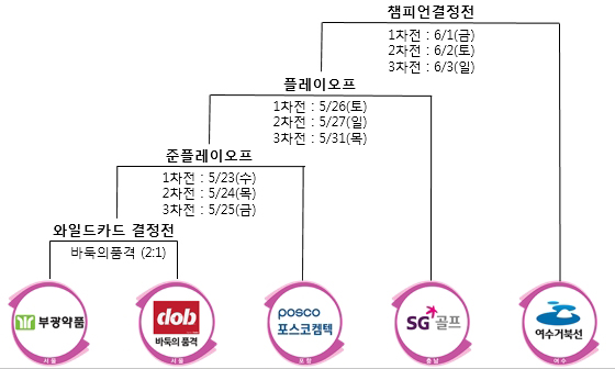 스텝래더 방식으로 우승팀을 가리는 포스트시즌의 모든 경기는 바둑