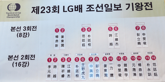 8강 대진은 박정환 9단 vs 판팅위 9단, 강동윤 9단 vs 양딩신 6단, 신민준 8단 vs 펑리야오 6단의 한ㆍ중전 3경기와 스웨 9단 vs 장웨이제 9단의 중ㆍ중전 1경기로 속행된다.