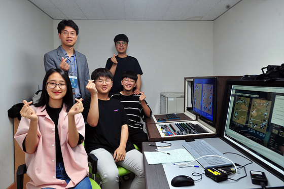 ▲ 제5회 전라남도 국수산맥 전국청소년 바둑축제 최강부 결승전을 중계한 한국바둑고등학교 방송반 학생들. 뒷줄 왼쪽부터 양건 9단, 방송부장 강진구(한국바둑고 2), 앞줄 왼쪽부터 방송부 차장 이슬(한국바둑고1), 김준서(한국바둑고1), 김태우(한국바둑고1).