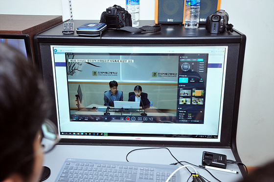 ▲ 최강부 결승전은 한국바둑고등학교 홈페이지를 통해 생중계됐다. 현장에서도 생중계를 볼 수 있어 학부모와 참가자들의 큰 호응을 받았다.