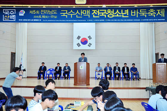 제5회 전라남도 국수산맥 전국청소년 바둑축제 첫 날인 16일 오후 2시에 시작된 개막식에는 본 대회를 후원한 전라남도교육청 왕명석 체육건강과장, 한국바둑고등학교 박경희 교장, 전라남도청 박종열 스포츠산업과장, 이만구 전라남도바둑협회장, 신철호 전라남도바둑협회 사무국장 등 내빈들과 양건·한종진·김주호 9단, 김남훈·김지우 초단 등 심판위원 및 대회 관계자가 참석해 성공적인 대회 개최를 축하했다.