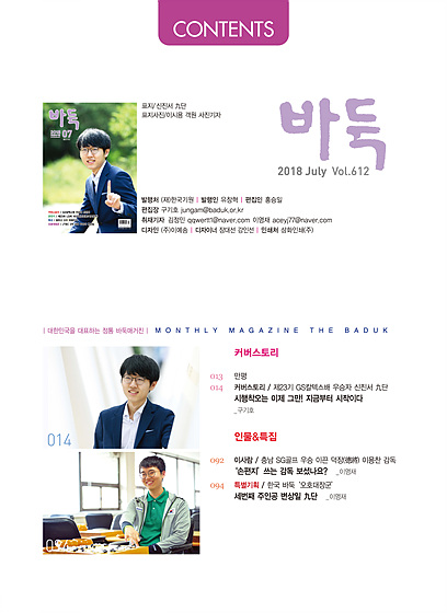[커버스토리]에서는 이세돌 9단과의 결승5번기를 종합전적 3-2 승리로 장식하며 국내 통합기전 두 번째 우승을 차지한 신진서 9단의 이야기를 담았다. 신진서 9단과 이세돌 9단이 펼친 명승부는 [상세관전기1]에서 만나볼 수 있다.