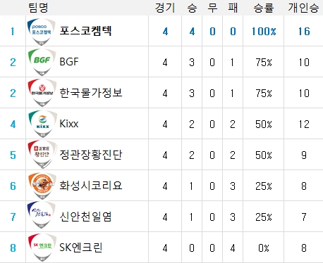 ■ 5라운드 2경기(금) SK엔크린(4패) vs 한국물가정보(3승 1패)