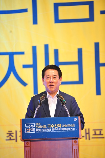 답사에 나선 김영록 도지사는 “한국 바둑의 본향 전남은 바둑의 위상을 더욱 높이고 힘쓰고 있다. 한국 최초로 국립바둑박물관 건립을 추진 중”이라며 “국수산맥 국제바둑대회도 해마다 내실을 더하며 세계 명문 바둑대회로 커가고 있다. 선수 여러분은 그동안 갈고 닦은 실력을 유감없이 발휘해 멋진 승부를 펼치길 바라며 전남에서 행복한 일정 보내고 돌아가시길 바란다”고 말했다.
