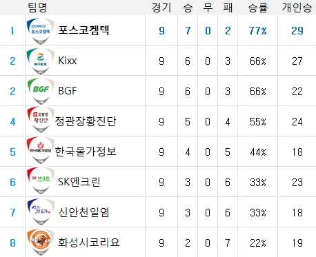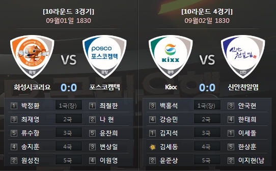 ■ 10라운드 3경기(토) 화성시코리요(8위. 2승 7패) VS 포스코켐텍(1위. 7승 2패) *전반기 포스코켐텍 3-2 승