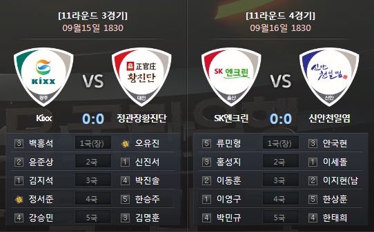■ 11라운드 4경기(일) SK엔크린(4승 6패. 6위) VS 신안천일염(4승 6패. 7위)